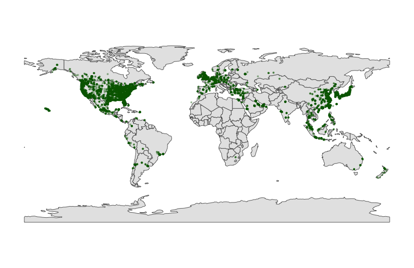 - point maps: plotting locations of individual observations