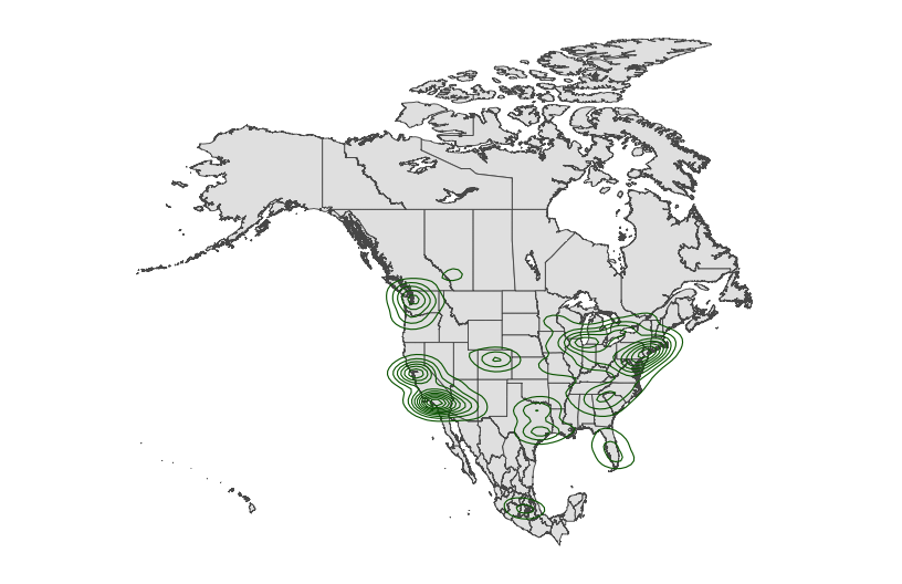 - contour maps: plotting the density or distribution of observations (not the individual observations themselves)